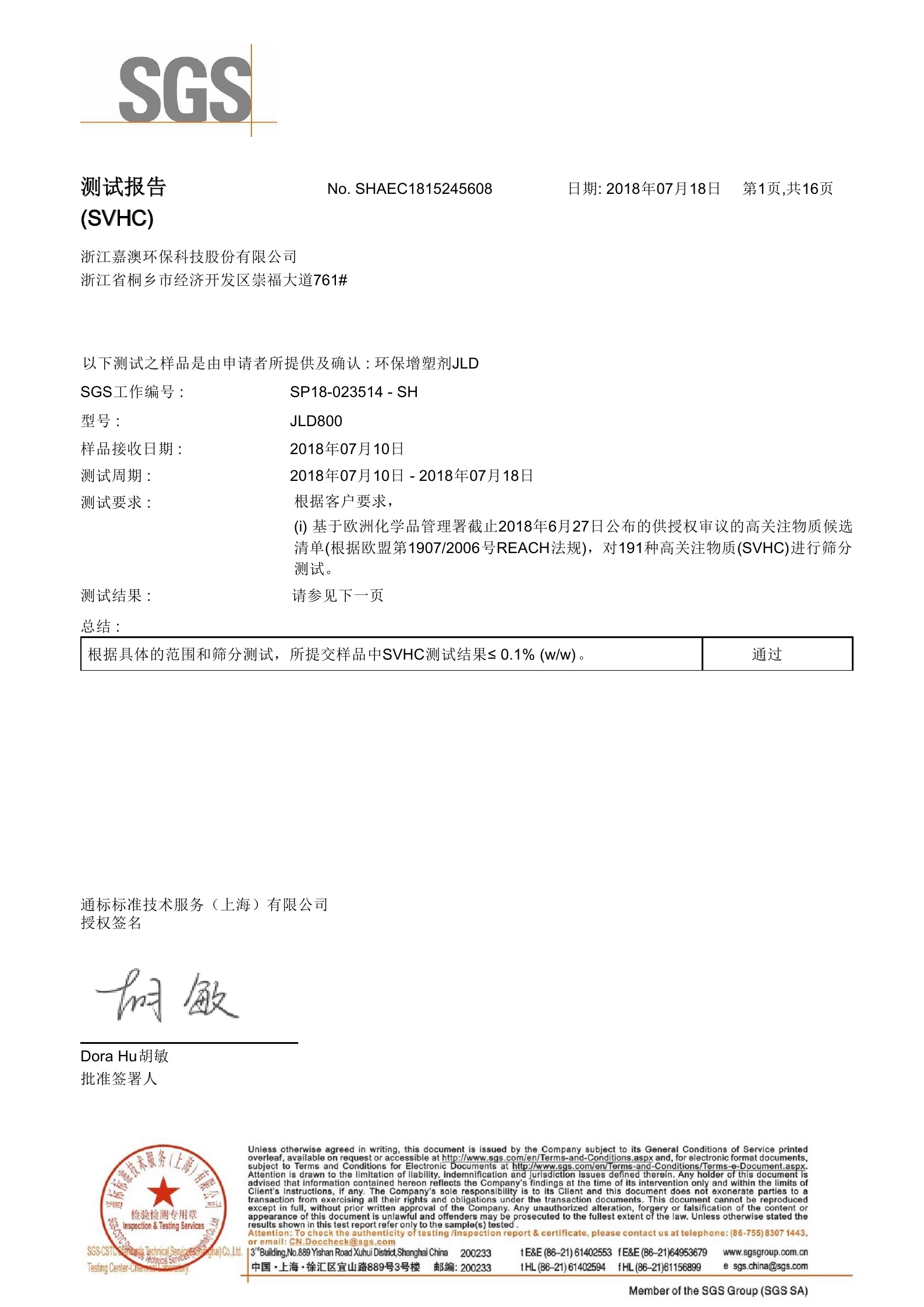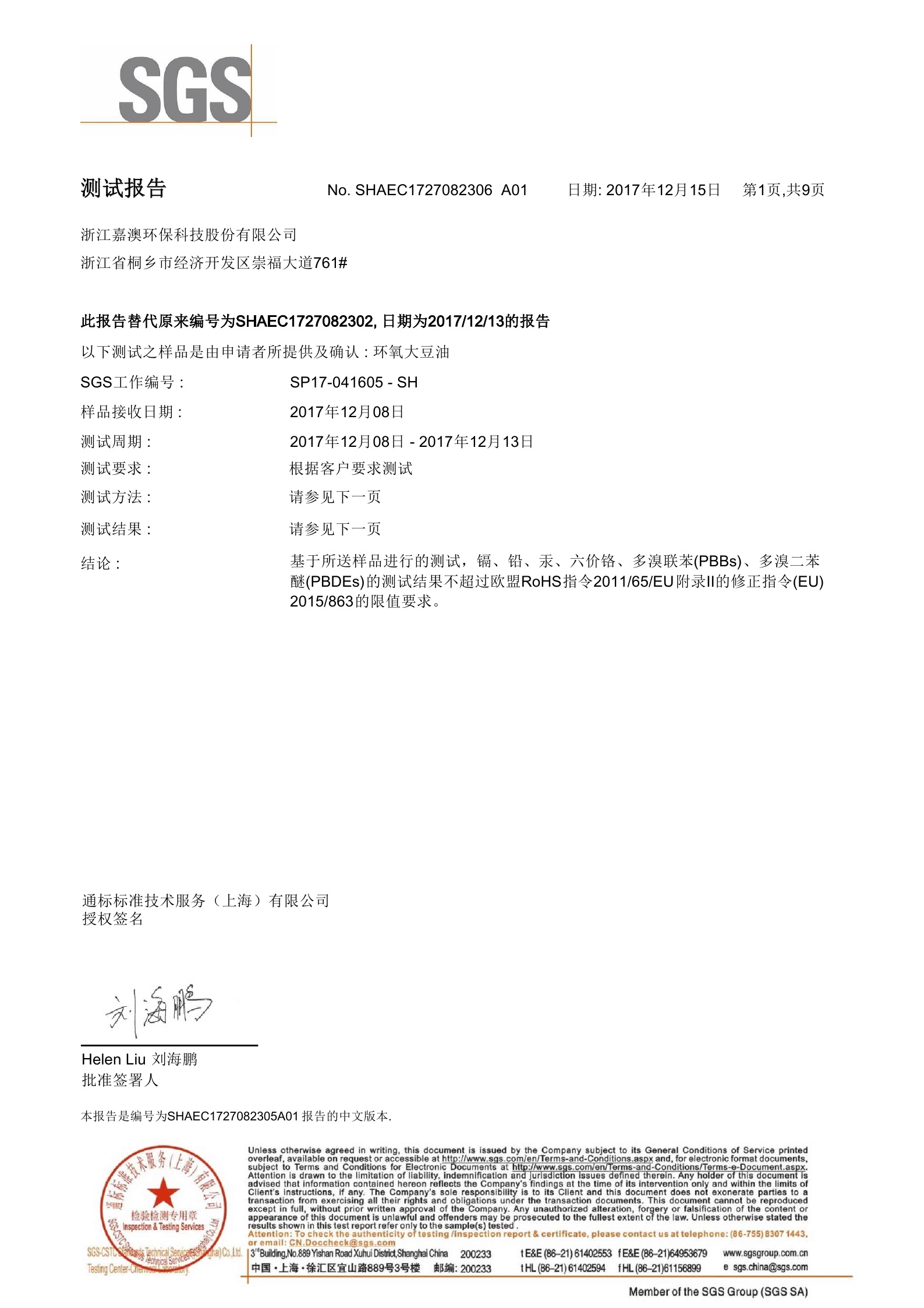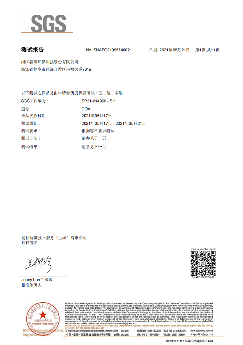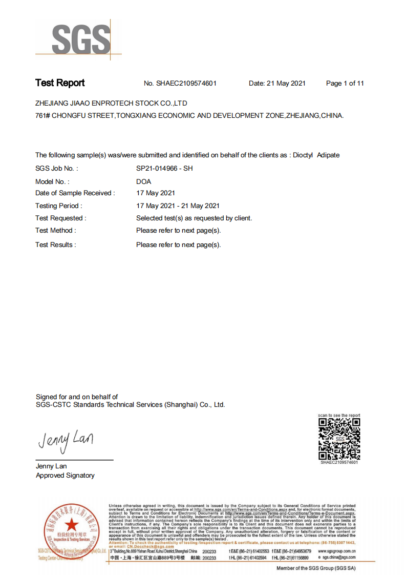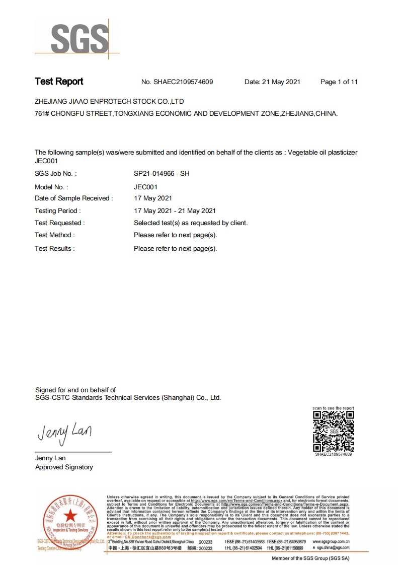 环保增塑剂JEG1-33Ⅱ型通过SGS测试2